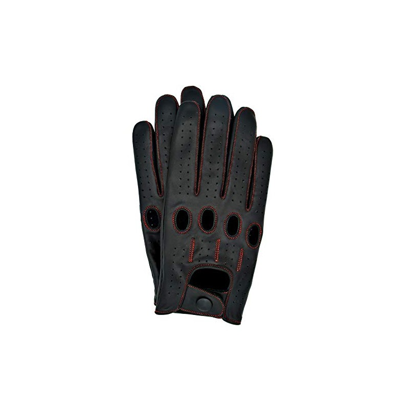 Riparo Genuine Leather Full-finger Driving Gloves (X-Small, Black/Red Thread)