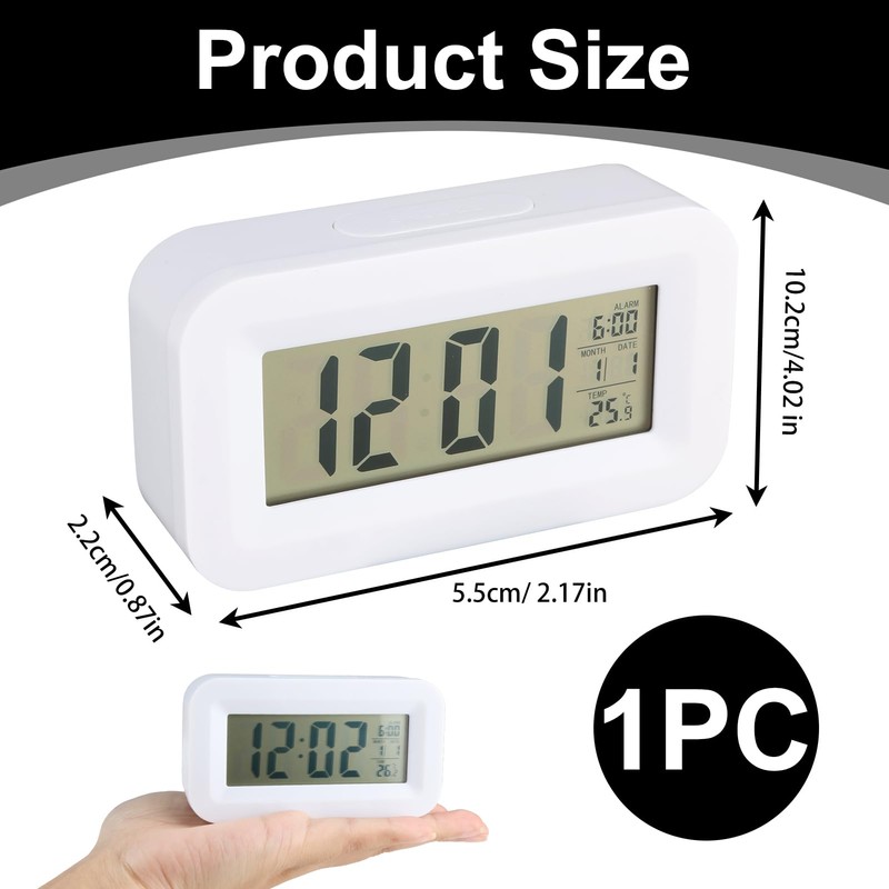 Discover the ultimate convenience with our Digital Alarm Clock, designed to cater to your timekeeping needs with precision and ease. This clock features a prominent LED display that not only shows the time but also integrates temperature readings, a full calendar, and customizable alarm settings into one sleek device. The built-in sensor adjusts the backlight automatically, providing optimal visibility day and night, which makes it perfect for any age group, including the elderly and children.