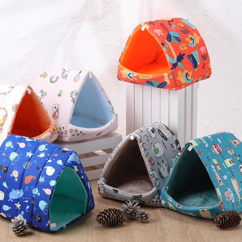 - Comfort Warmth and Security: the comfort of your pet is our top priority our colorful guinea pig bed room is designed to provide a warm and secure environment, Soft PP cotton material ensures warmth and comfort this shelter is nice for resting, playing and sleeping and is a little paradise for your pet