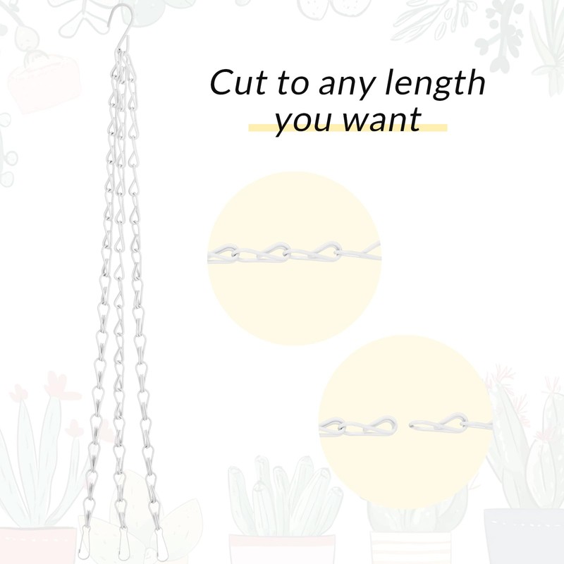 - Adjustable Length Meet Your Needs: the chain for hanging plants consist of an S-shaped hook, three clamps, and three chains, each consisting of many small closed double hooks; You can use the tool to open the S-hook to reduce the chain by one or two as needed; You can adjust the length of the chain by increasing or decreasing the number of small double hooks