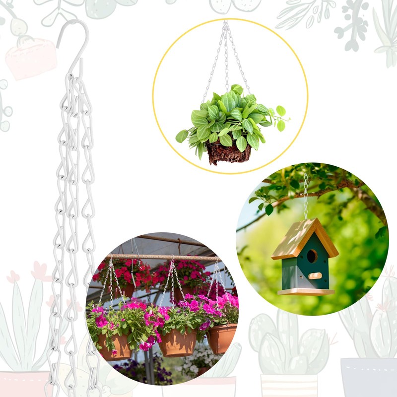 - Widely Applicable: the hanging basket chain with Hook is suitable for the hanging and installation of bird feeders, plant baskets, aviaries, flower pots, tallow baskets, lanterns, wind chimes, billboards, chalkboards, decorations and other fixtures; Use your imagination to explore its uses, not only to help you save space and organize items, but also to decorate your home, white and classic design will add beauty to your home
