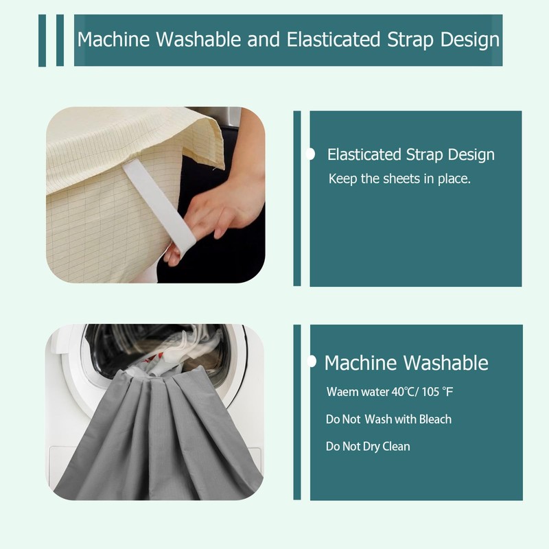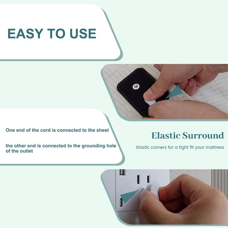 - 3.Unique design saves money: 1x grounding fitted sheet, 1 x earthing cable, 1x English manual. This is grounding sheet ready to use and you don't have to buy accessories.