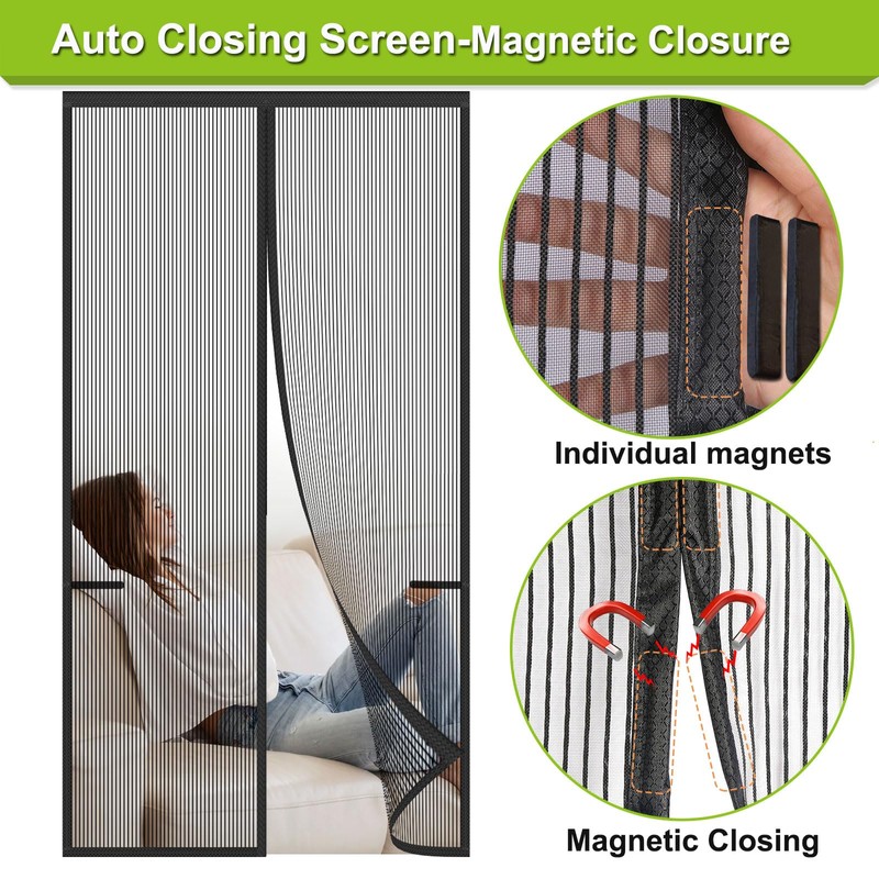 - Powerful Magnets Self Sealing: As built-in more than 34 strong magnets, Door screen magnetic closure can open easily and close automatically, it close back together immediately and seamlessly after you walk through, friendly to children and pets