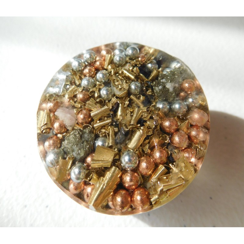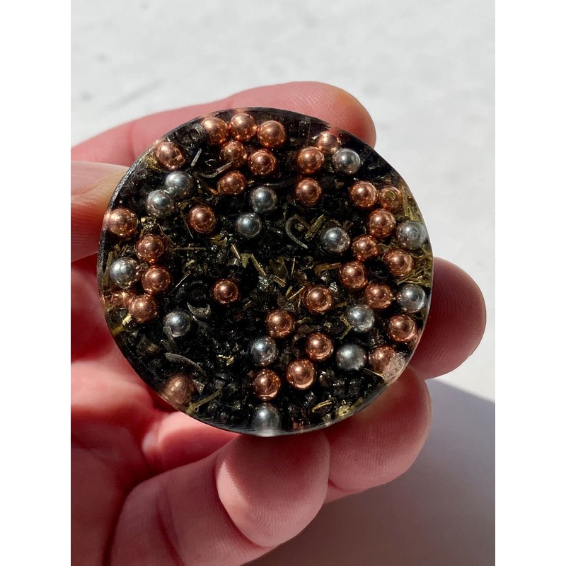 Orgone Generator Energy Accumulator*Intentions Love, Strength, Power, Healing, Calm, Clarity, Creativity, Abundance, Prosperity *Size:Width Top 1 1/4"-31mm Base 1 ?"-44mm Height 3/4"-19mm *Made with Love***Thanks For Looking! ++Orgone is a handmade product and may have some small imperfections such as bubbles or texture variations; this in no way affects the quality or function of the orgonite devices.++ Thanks for your orders! Orgone energy generators are based upon the pioneering work of Wilhelm Reich and Others. They take Deadly Orgone Radiation (DOR) and turn it into Positive Orgone Radiation (POR). Simply put POR is the creative life force in nature. Orgone generators are also thought to mitigate the harmful effects of Electromagnetic waves, ELF and HAARP waves in your environment. Put them near your TV, computer or anywhere in your living space. Even put them in your garden and watch it flourish a bloom like never before. ::Disclaimer: We make no medical claims about our products. If you have a medical conditions please consult a physician.:+++:All Handmade to Order++ Note: You will receive 1 Small Tower Buster similar to the pictures.++++.+= ++++++++.