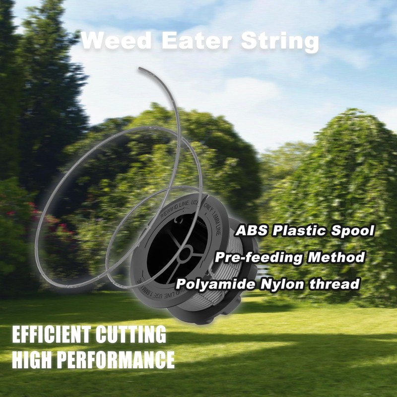- High Quality The grass trimmer replacement thread spool made of durable ABS and high quality nylon thread is sturdy, shatterproof and durable. The trimmer thread spool is flexible and elastic, so it stretches on impact on hard ground and serves as a buffer to mow the lawn faster
