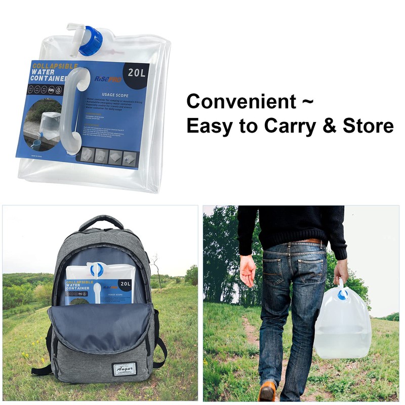 - RISEPRO Faltbarer Wasserbehälter mit Zapfhahn, 5,3 Gallonen (20L) BPA-freier Wasseraufbewahrungskrug Wasserflasche für Outdoor-Camping, Wandern & Notfall-Überlebens-Kit, faltbar, tragbar