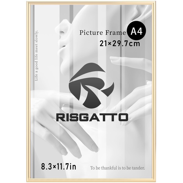 Risgatto A4 Picture Frame, 8.3x11.7 Inch Minimalist Aluminum Frame with HD Acrylic, Thin Metal Poster Frame for Wall Mount, Vertical & Horizontal Display – Gold