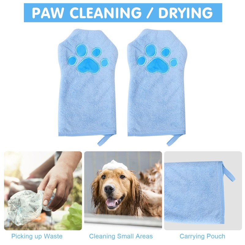 Risipu 2 Pcs Dog Cleaning Gloves for Dogs and Cats, Ultra Soft Coral Fleece Dog Towels, Super Absorbent Washable for Small Medium and Large Cats Dogs Cute Cat Paw Gloves Towel (Blue)