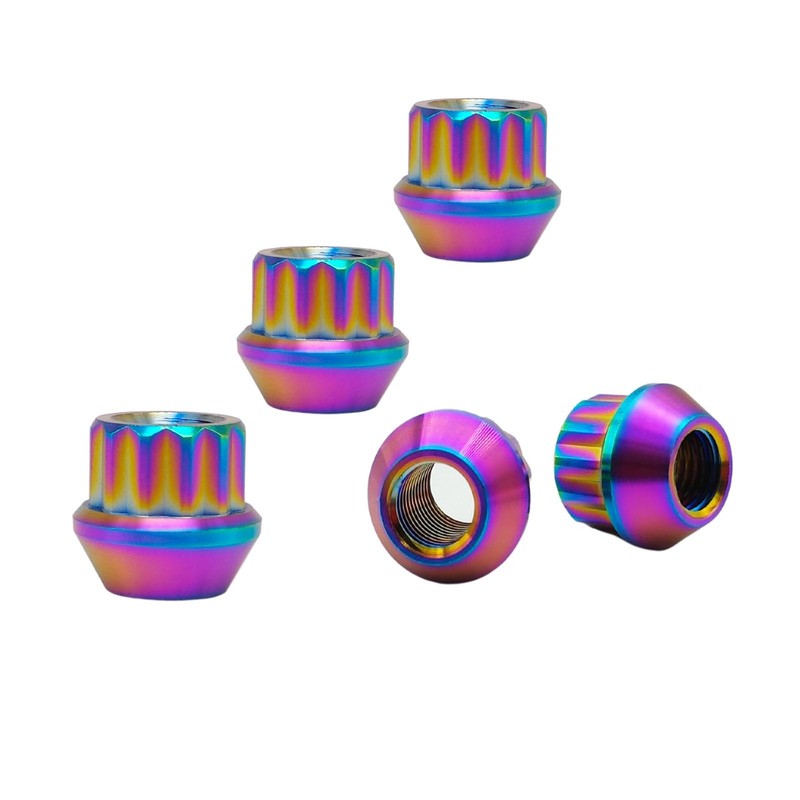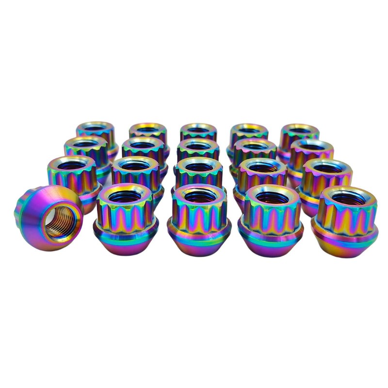 RISON-Titanium 12-Point Titanium Stud Lock Lug Nuts M12/M14 Lug Nuts 20 PCS Titanium Lug Nuts Open End TI GR5 Lug Nuts (Rainbow, M14*1.5)