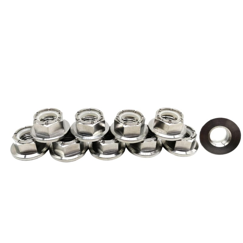 - Note: Titanium flange nuts are available in different sizes, they are great replacement nuts for your old or broken nuts. Please choose the titanium nuts that fit your size. If you have any questions, please feel free to contact us. We will reply to you within 24 hours. The cost of customs clearance shall be borne by the buyer.