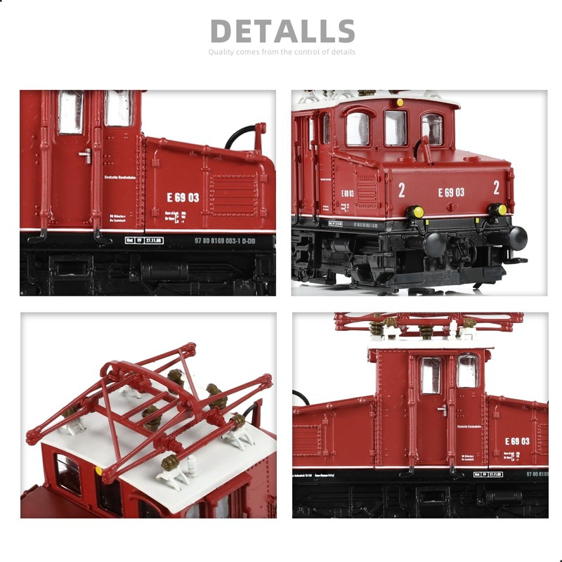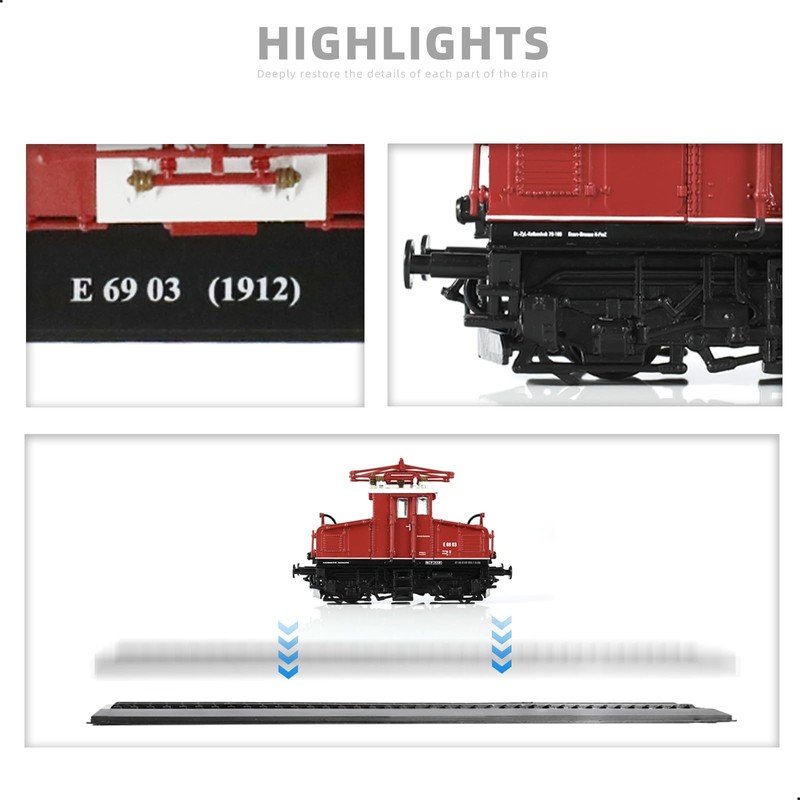 - 【1912 E69 03】-The prototype of this 1:87 scale train model set is E6903 (1912) is a classic electric locomotive that was first put into service in 1912. It was part of the early electrified railway system in the United States, mainly used for freight and long-distance transportation. This locomotive has strong traction and can run smoothly under high loads. It is an important milestone in the electrification of American railways. Come and bring home a memory of a 1:87 vintage model train toy!