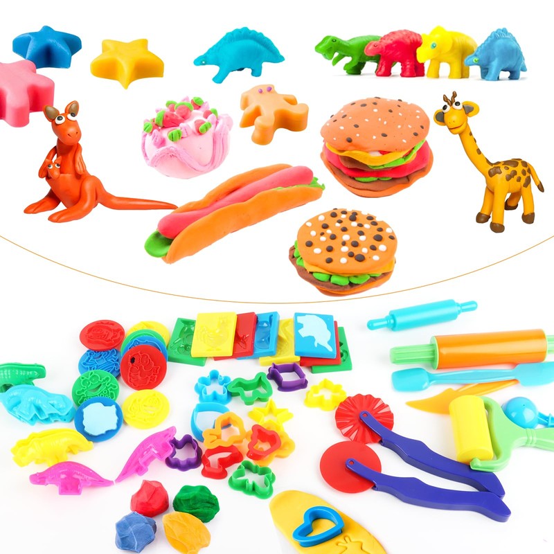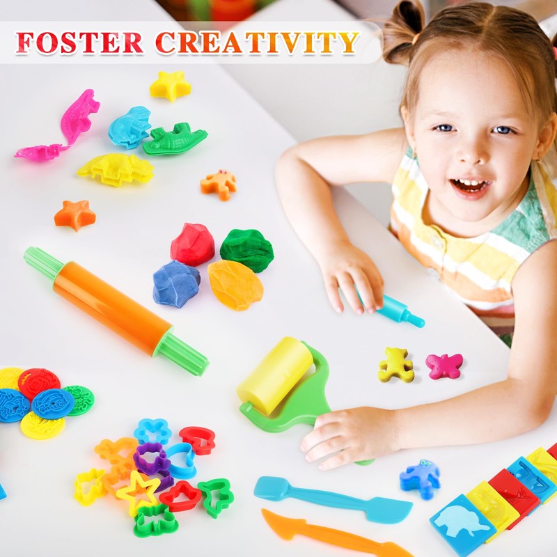 - Modelling clay tool set: 40-piece kneading tool set, including rolling pin, dinosaur shapes, geometric shapes, cutting shapes, plastic blades, modelling spoons and so on. Rich variety and bright colours can infinitely stimulate children's imagination and creativity. Note: Clay is not included!