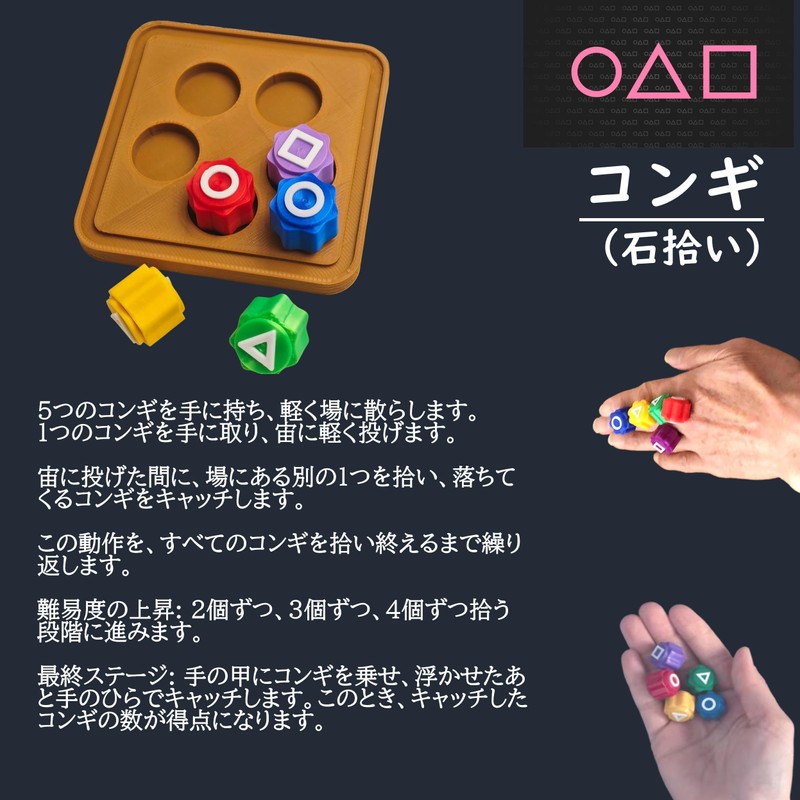 Rita Shokai Squid Game Korean Folk Play Set for Kids, Rock Picking Game, Educational Toy, Home and Party Set of 3