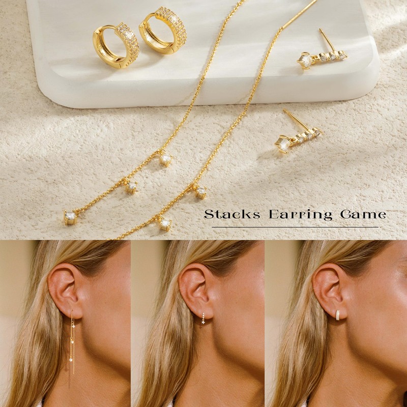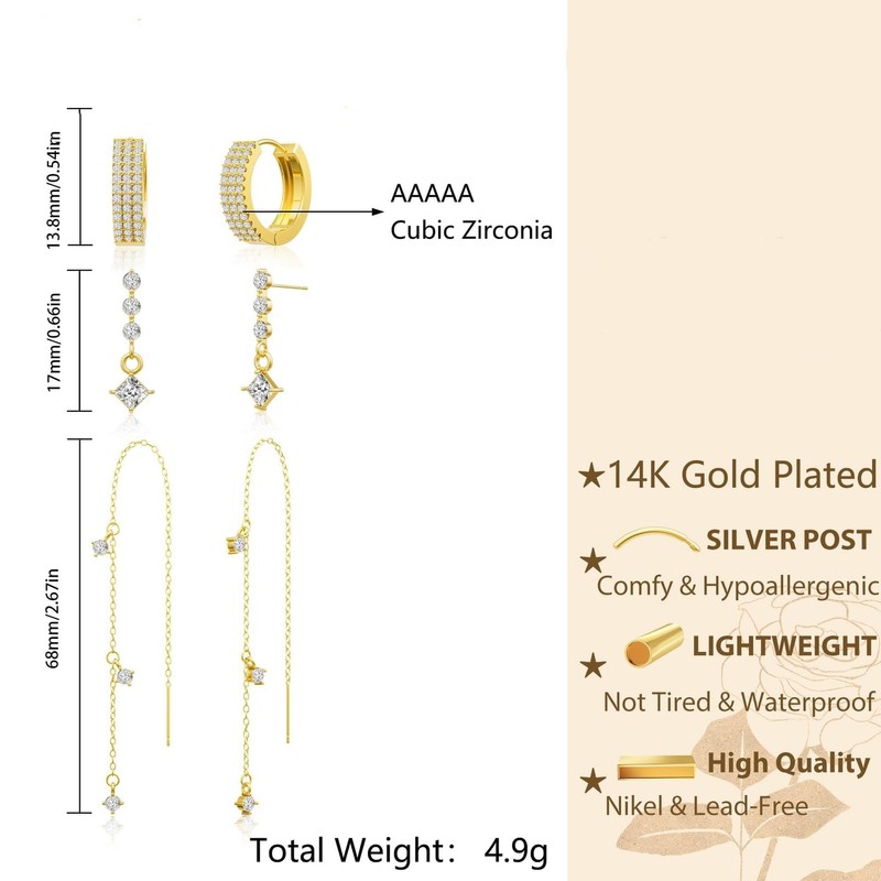 - [Chain Earrings Stacks]: Includes 1 long chain earrings, 1 cz stud dangle earrings, 1 small ball dangling stud that are designed specifically for everyday wear or special occasions for women, mix and match them to create different looks or wear them stacked, show off your style and beauty.
