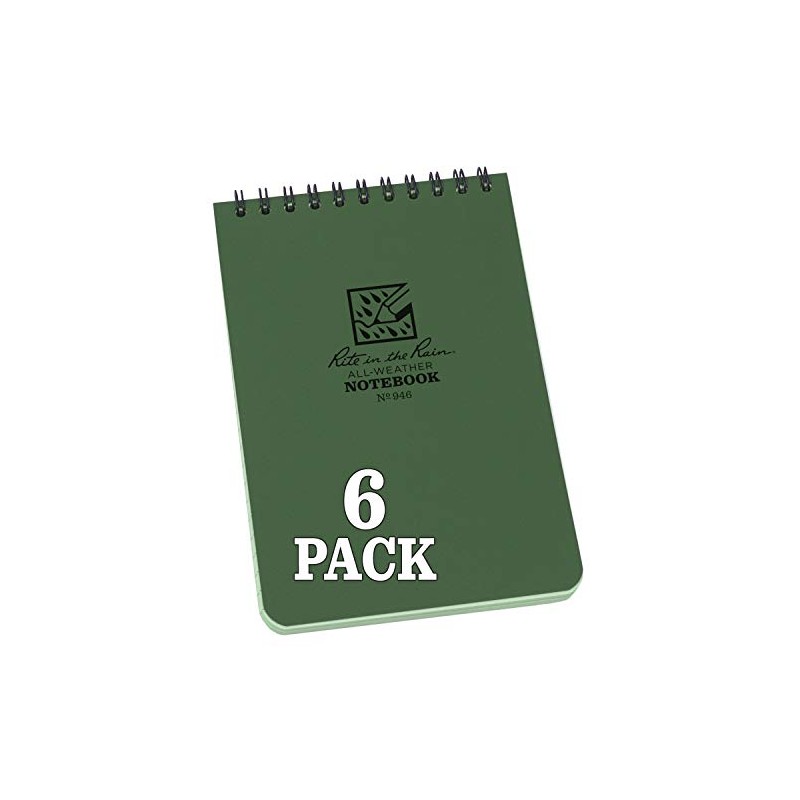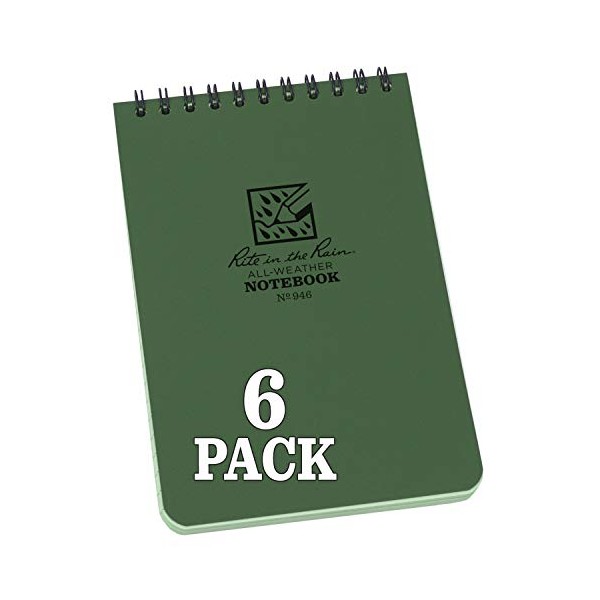 Rite in the Rain Weatherproof Top Spiral Notebook, 4" x 6", Green Cover, Universal Pattern, 6 Pack (No. 946L6)