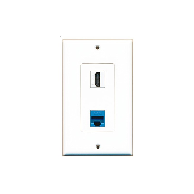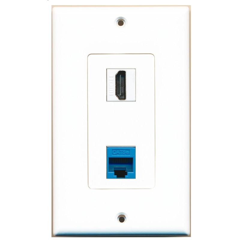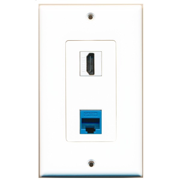 RiteAV 1 Port HDMI 1 Port Cat5e Ethernet Blue Wall Plate Oversized Jumbo MIDI