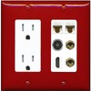 RiteAV 1 Speaker 2 Banana Binding Post Wall Plate 2 Cat6 1 x Toslink Optical and HDMI - Tamper-Resistant Outlet [Red/White]