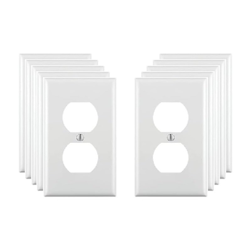 RiteAV 10 Pack Receptacle Outlet Covers Duplex Wall Plate Kit Standard Size 1 Gang 4.5" x 2.75" Unbreakable Polycarbonate Thermoplastic