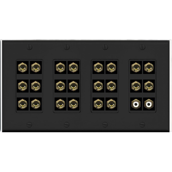 RiteAV 11.2 Surround Sound Speaker 22 Banana Port Wall Plate w/2 x RCA Female Connectors - 4 Gang [Black]