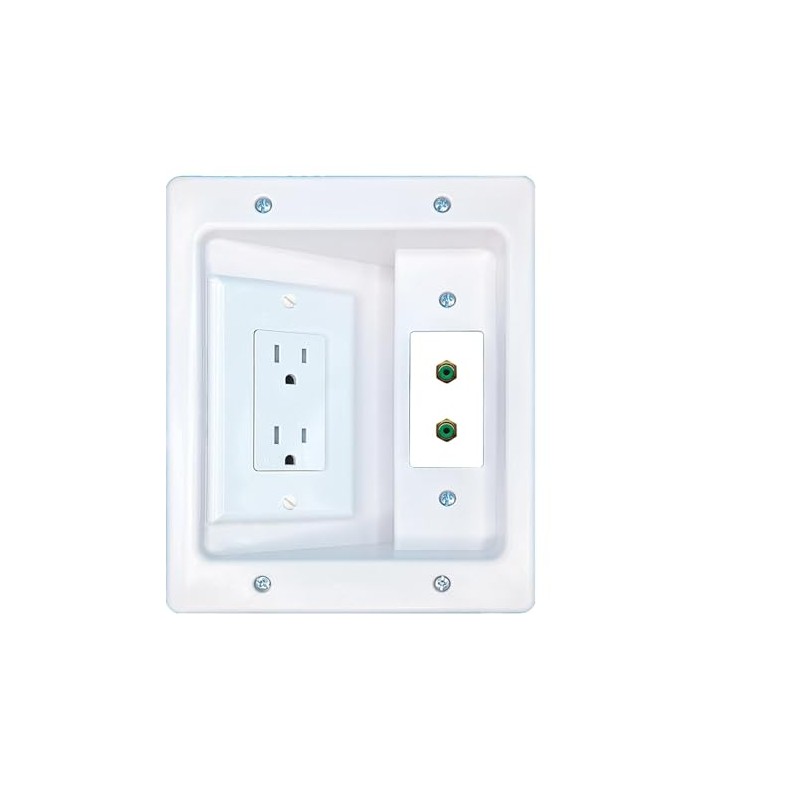 RiteAV 2 RCA-Green Recessed Wall Plate Cable Concealer Management Kit with Power Outlet Hides Cords and Cables