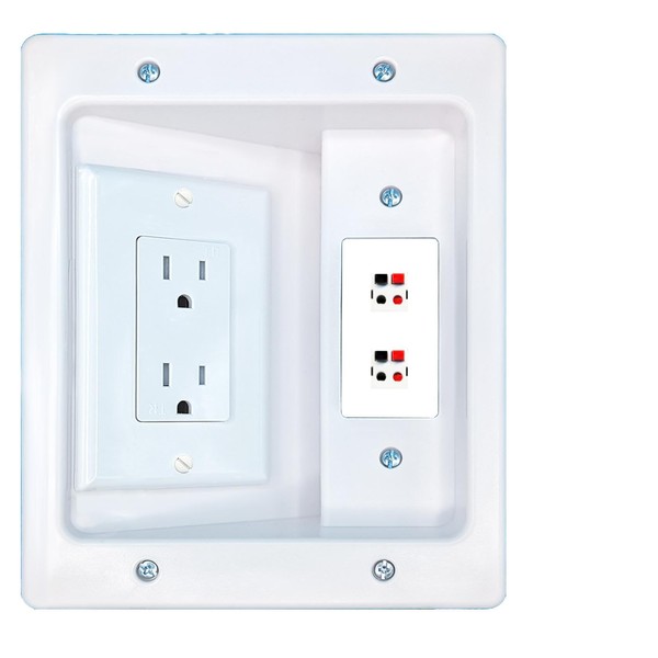 RiteAV 2 Speaker Recessed Wall Plate Cable Concealer Management Kit with Power Outlet Hides Cords and Cables
