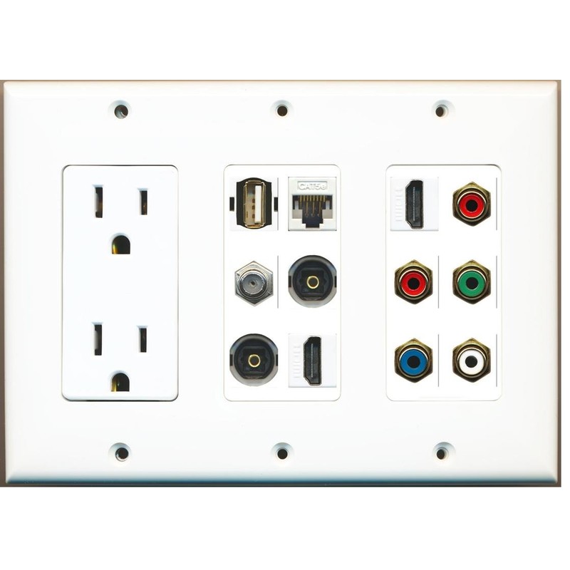 RiteAV - (3 Gang) 15A Outlet 2 HDMI Coax Cat5e Component RCA 2 Toslink USB Wall Plate