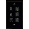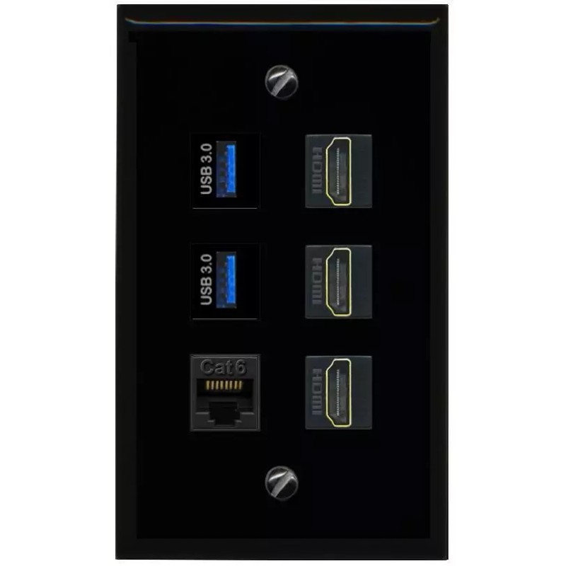 RiteAV 3 Port HD 2 Port USB 3.0 1 CAT6-RJ45 Wall Plate - Flat [Black/Black]