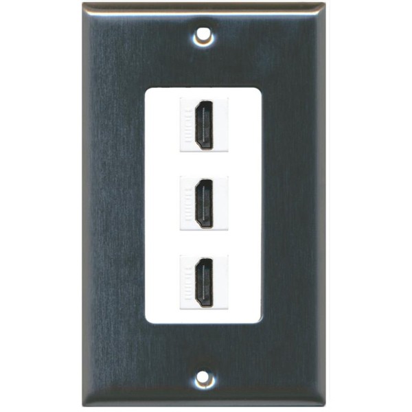 RiteAV - 3 Port HDMI 2.0 Decorative Wall Plate (Stainless Steel & White)