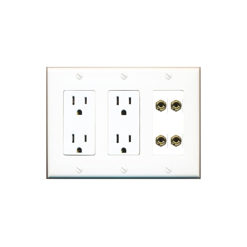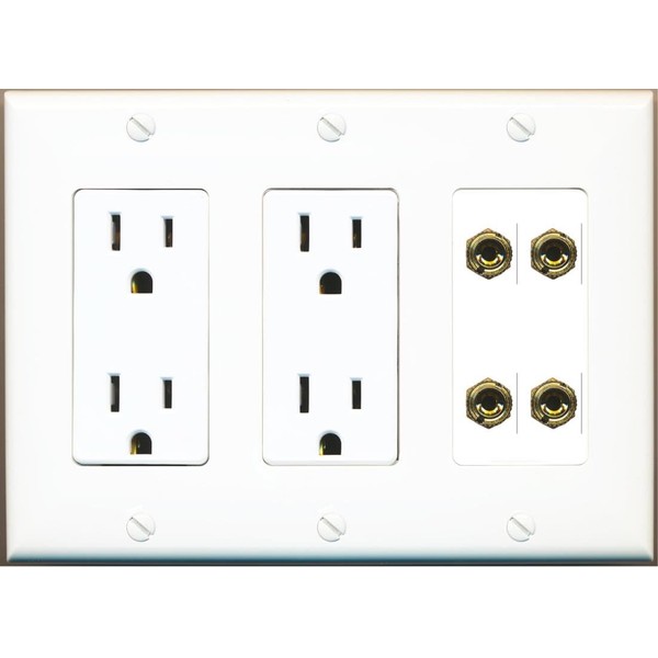 RiteAV 4 Banana 2 Speaker Surround Female Coupler Binding Post Wall Plate - 2 Outlet [White]
