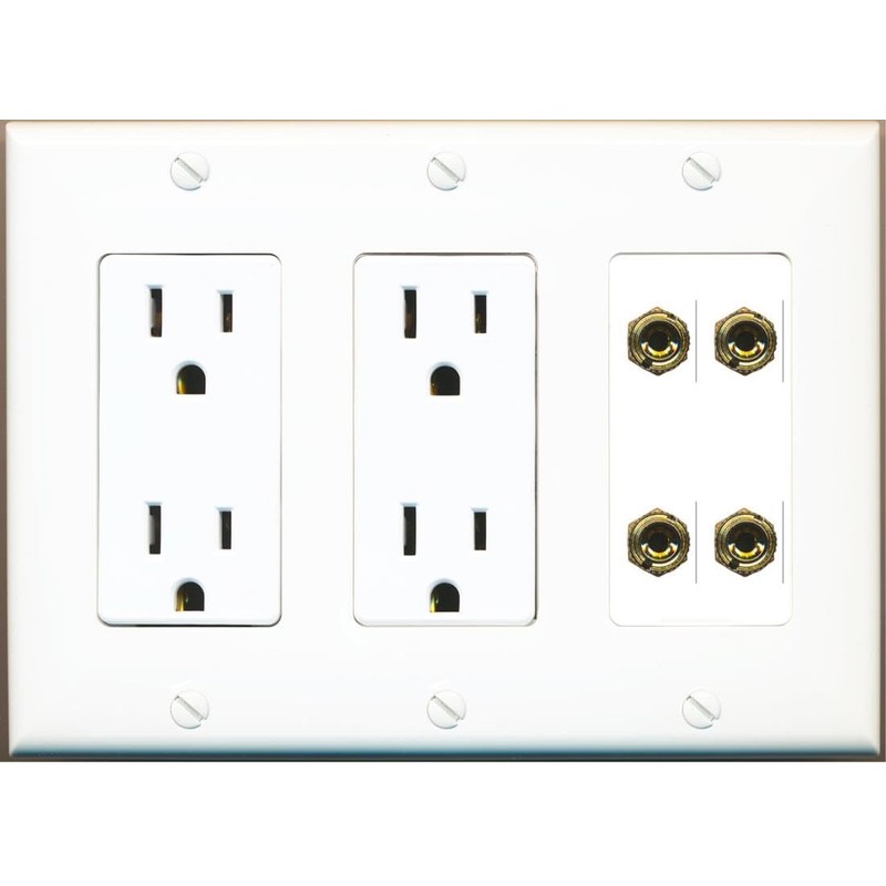 RiteAV 4 Banana 2 Speaker Surround Female Coupler Binding Post Wall Plate - 2...
