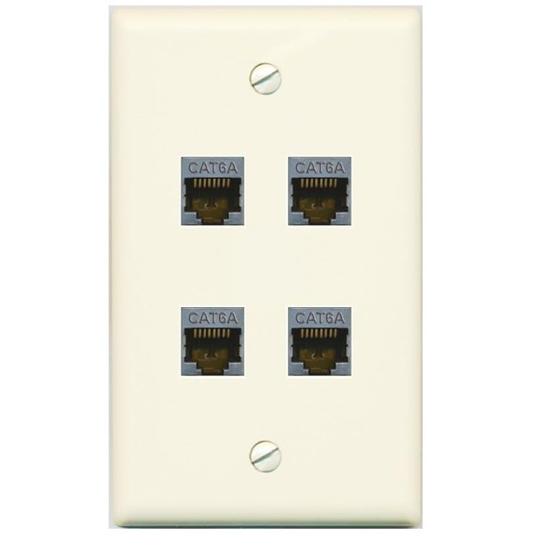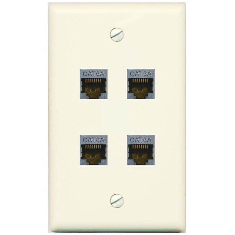 RiteAV - 4 Port Cat6A Ethernet Wall Plate - Flat Style [Light-Almond]