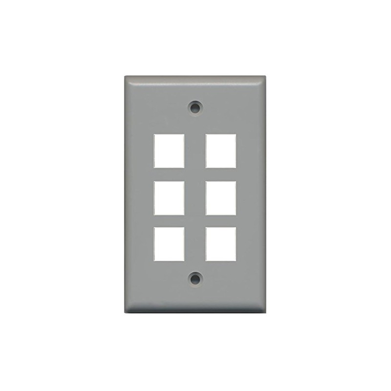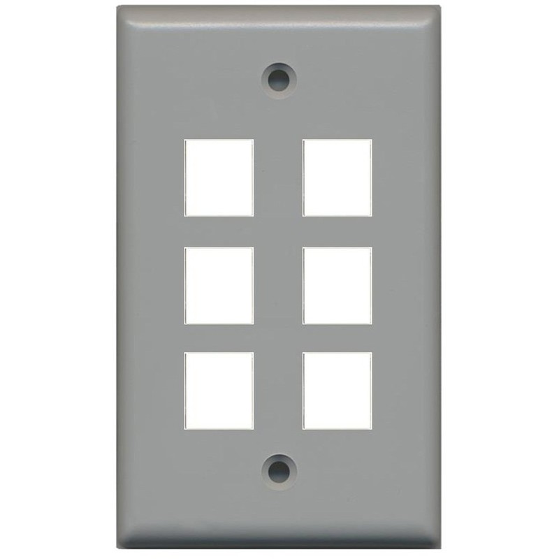 RiteAV Blank Wall Plate for Keystone Jacks - Gray 1 Gang 6 Port