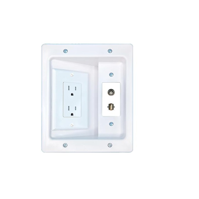 RiteAV BNC USB2 Recessed Wall Plate Cable Concealer Management Kit with Power Outlet Hides Cords and Cables
