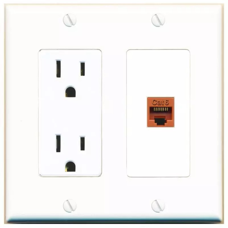 RiteAV CAT6-ORANGE Decorative Wall Plate with Power Outlet 1 Port [White]