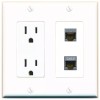 RiteAV Power Outlet and CAT6A CAT7 Wall Plate Decorative [White]