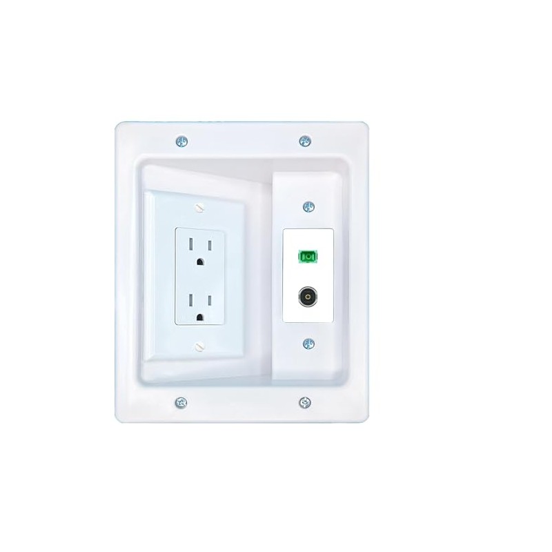 RiteAV SC-APC-SX TOSLINK Recessed Wall Plate Cable Concealer Management Kit with Power Outlet Hides Cords and Cables