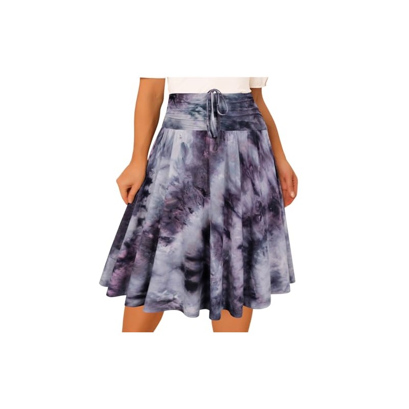 - Item Feature: High waist skirts features Open side-seam pockets, detachable belt, unique tie dye design, midi length and Flared A-Line silhouette.