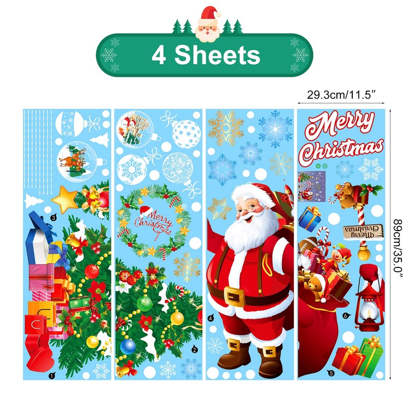 - Christmas sticker window decoration: 4 sheets of Christmas window stickers (total 71 Christmas elements), different types of electrostatic Christmas pictures window stickers, reusable, original and unique. Perfect for the Christmas window door or wall decoration, shop decoration, children's room, etc.
