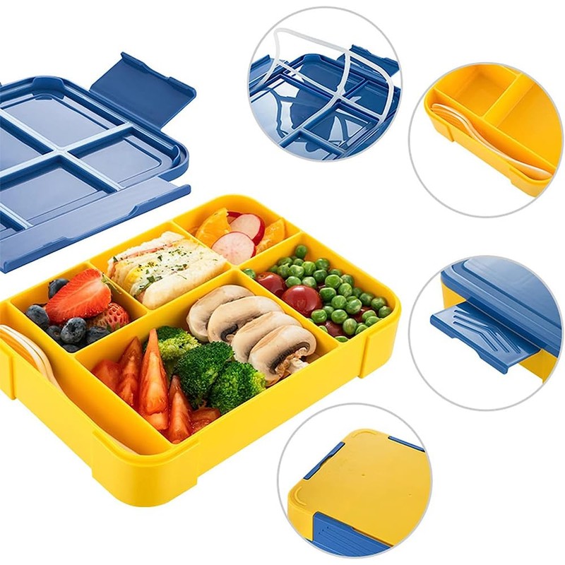 Ritte Bento Box Kinder, Brotdose Kinder mit Fächern, Jausenbox, 1330ML Lunchbox Auslaufsicher Luftdichte Brotzeitbox mit 5 Fächern und Besteckset, für Mikrowellen Spülmaschinen (Blau)