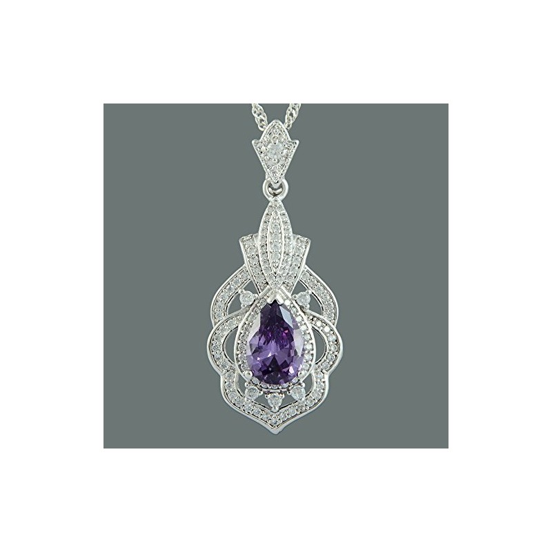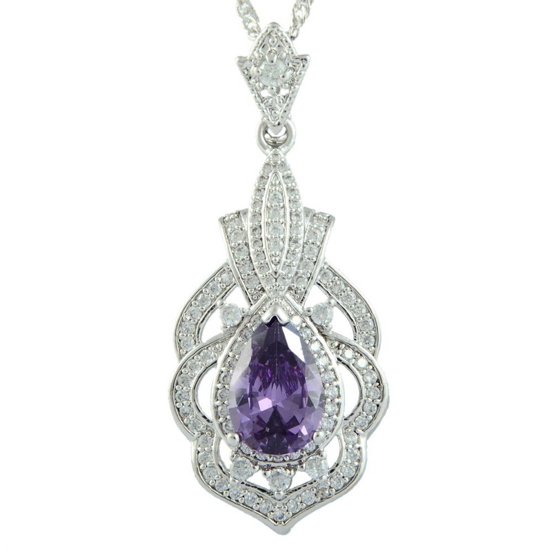 - Metal and gemstones: environmentally friendly brass (nickel-free) with 18K white gold plated. Purple amethyst colour (February birthstone) are used. Main gemstone size is 7 mm x 10 mm x 1