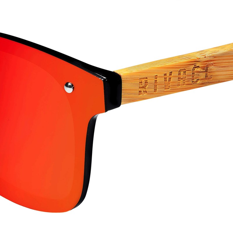 Rivacc Polarized Sunglasses with UV400 Protection, Unisex for Men and Women, Handmade with Bamboo Wood, London (Red)