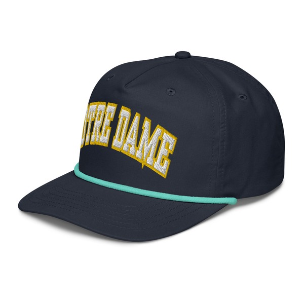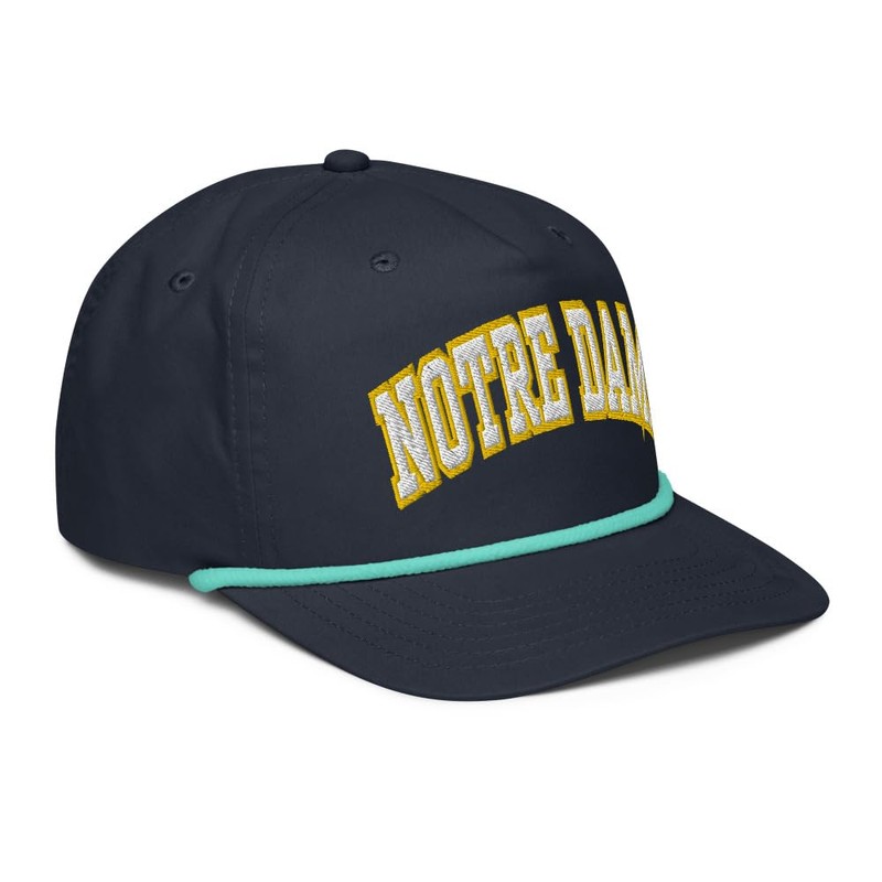 RIVEMUG NG Notre Dame Embroidered Semi Curved with Contrasting Rope Retro Golf Cap Relaxed Fit Contrasting Snapback Hat Navy/Mint