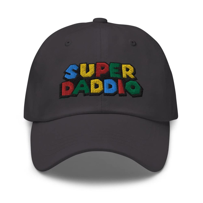 - THE SUPER DADDIO CAP: Embark on an epic adventure through the world of fatherhood with our Super Daddio Cap, This Cap features bold, vibrant colors and a playful design. It's a tribute to the classic video game that will bring a smile to your face and capture the hearts of both young and old. Whether you're rocking it at family gatherings, taking on the challenges of parenting, or simply enjoying some downtime, the Super Daddio Cap is here to remind you of your superpowers as a dad.
