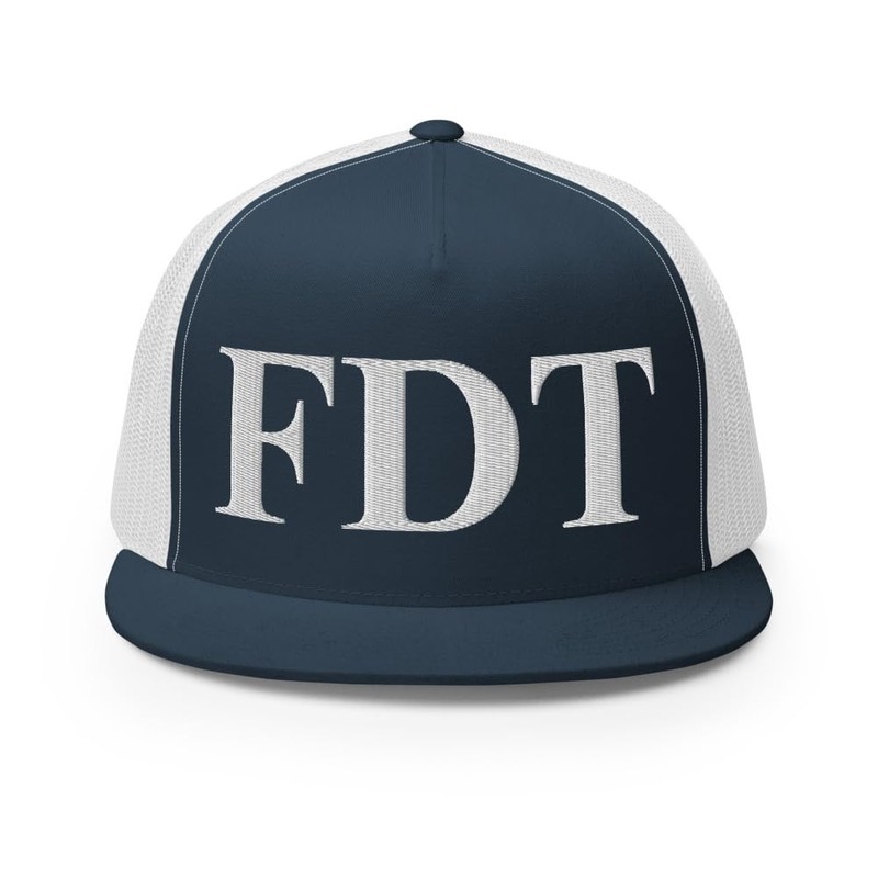- THE FDT FLAT BILL TRUCKER HAT: is a high-quality and well-crafted accessory that is sure to turn heads. Made with premium materials, it is comfortable to wear and designed to last. The adjustable closure ensures a perfect fit for allmost all head sizes.