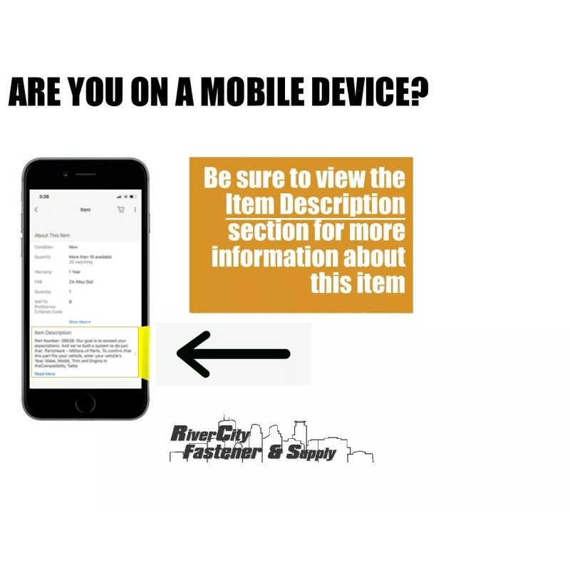 If you have a question about a part or need assistance with an order click on the "Contact Seller" link in the upper right hand corner of each listing. Or give us a call M-F 8am-4;30pm Central standard time. Since eBay no longer allows us to display our phone numbers in the listing please find our phone number on the internet by searching "Rivercity Fastener & Supply in Minnesota and it will bring our number right up. Copyright © 2022-2023 Rivercity Fastener & Supply. All Rights Reserved. We are a real functioning business. eBay questions and opened item cases will be answered and dealt with during business hours by our eBay site manager. Our Business hours are Monday-Friday, 8:00 A.M. to 5:00 P.M. central standard time. Paid orders will ship Monday-Friday 8:00 A.M. to 4:00 P.M. usually within one business day excluding holidays.