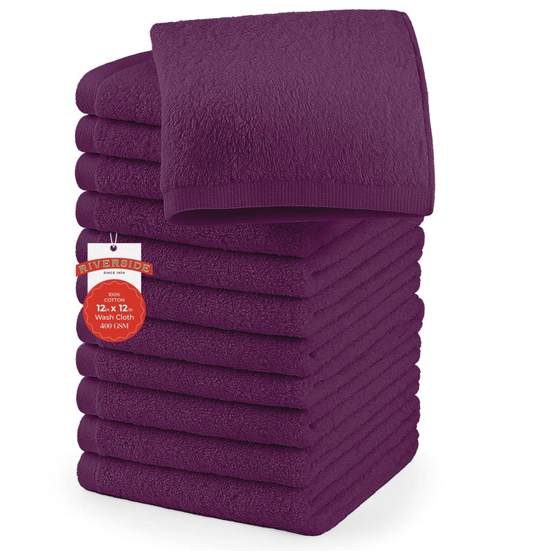 RIVERSIDE 12 Pack Washcloths Set โ 100% Ring-Spun Cotton Face Cloths โ Super Soft, Highly Absorbent, Durable โ Multipurpose Towels for Bathroom, Spa, Gym - Purple Passion