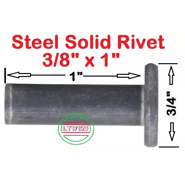Rivet Fast (2 Pieces) 3/8 X 1" Flat Head Steel Solid Rivet Steel