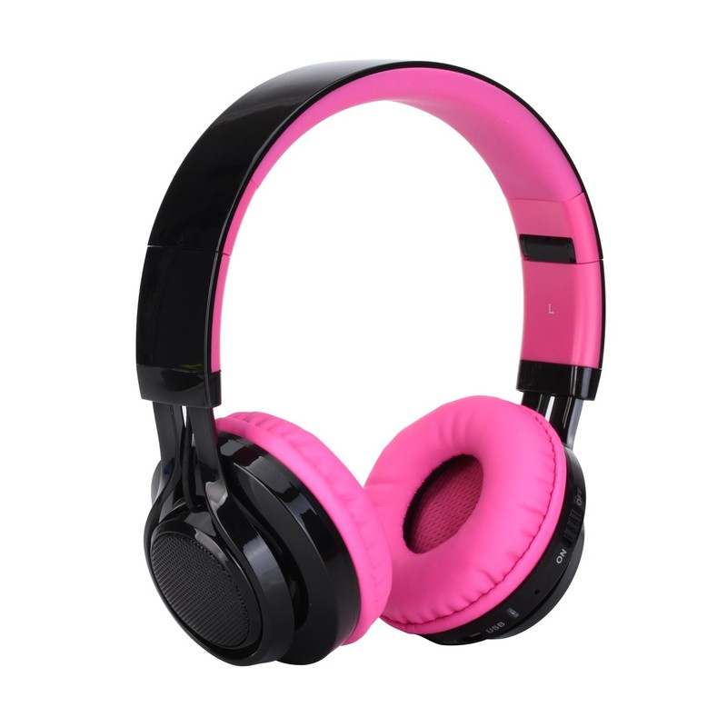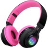 Riwbox Bluetooth Headset, AB005 Wireless Headphones 5.0 with Microphone Foldable Headphones with TF Card FM Radio and LED light for Cellphones and All Bluetooth Enabled Devices (Black&Pink)