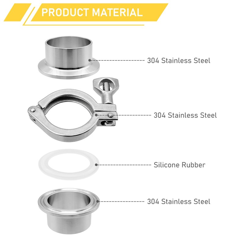 - 【Premium Material】The tri-clamp and short weld ferrules are crafted from 304 stainless steel, ensuring long-lasting durability and superior corrosion resistance. The silicone gasket offers a reliable seal, withstanding high temperatures and chemicals. Together, these components provide exceptional durability and reliability.