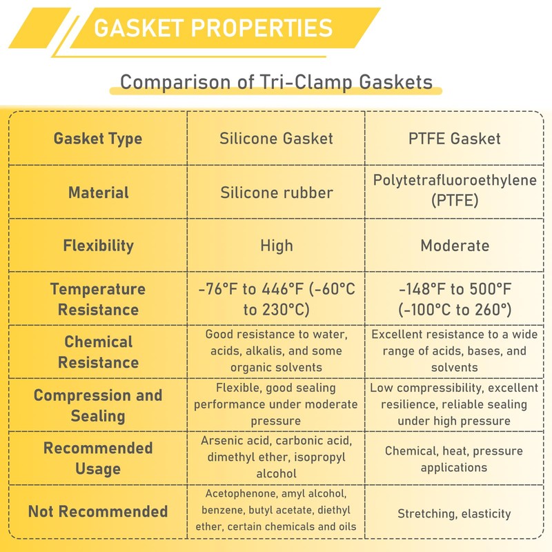 - 【Product Usage】Tri clamp gasket is an integral part of the tri-clamp system, which includes clamp, gasket, and ferrule. It ensures a secure and hygienic seal between tubing or piping segments. Compared to silicone gaskets, PTFE gaskets exhibit superior performance, particularly in high-temperature, high-pressure, and highly corrosive environments.